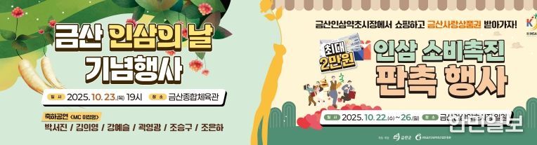 한민일보 서울포커스 유돈상 기자 | 금산군은 10월 23일 금산 인삼의 날을 기념하고 인삼·약초 소비 활성화에 나서고자 기념행사 및 인삼 소비촉진 판촉행사를 개최한다.