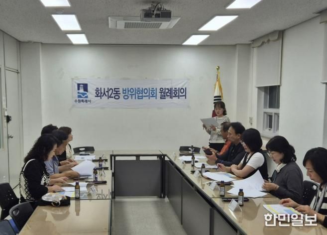 한민일보 서울포커스 진광성 기자 | 수원시 팔달구 화서2동은 10월 14일 오후 7시, 행정복지센터 2층 소회의실에서 ‘화서2동 방위협의회 10월 월례회의’를 개최했다. 이날 회의에는 황성준 화서2동 방위협의회 위원장을 비롯한 위원 10여 명이 참석해 지역 안보 현안과 시정 홍보사항을 공유했다.
