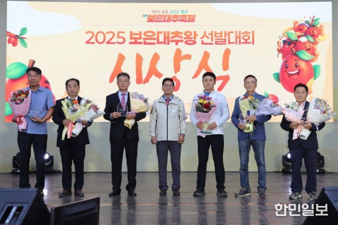 한민일보 서울포커스 김봉순 기자 | 보은군은 17일 2025 보은대추축제 주무대에서 올해의‘보은 대추왕’시상식을 열었다.
