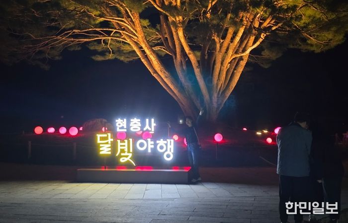 이번 행사의 또 다른 볼거리는 현충사 전역을 수놓은 야간 경관 조명이었다. 대형 게이트와 거북선 조형물, 발광다이오드(LED)볼과 네온플렉스 조명, 달 조명과 큐브 조형물 등 곳곳에 설치된 포토존에서는 가족과 연인들이 추억을 남기느라 분주했다.