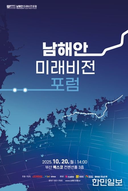 한민일보 서울포커스 임광현 기자 | 부산시는 오늘(20일) 오후 2시 벡스코 컨벤션홀에서 열리는 '남해안 미래비전 포럼'에서 경상남도·전라남도와 함께 동반성장을 위한 전략적 협력 방안에 대해 논의한다고 밝혔다.