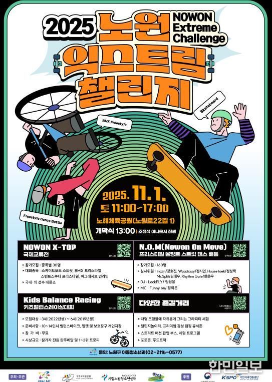 한민일보 서울포커스 김봉순 기자 | 서울 노원구가 다음 달 1일 노해체육공원에서 '2025 노원 익스트림 챌린지(NOWON Extreme Challenge)'를 개최한다고 밝혔다.