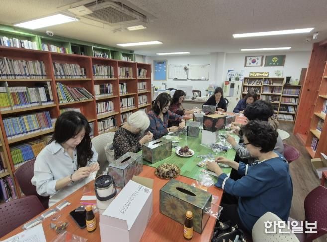 한민일보 서울포커스 진광성 기자 | 수원시 팔달구 우만2동 새마을문고는 지난 16일 문고 프로그램 일환으로 비즈 티슈케이스 만들기를 진행했다.
