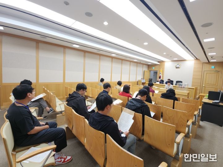 한민일보 서울포커스 박덕환 기자 | (재)충청남도평생교육인재육성진흥원 충남청년센터가 운영하는 공주시 청년도전지원사업 참여 청년들이 최근 대전지방법원 공주지원 부동산 경매법정을 방문해 평소 쉽게 접할 수 없는 경매 과정을 직접 경험했다.