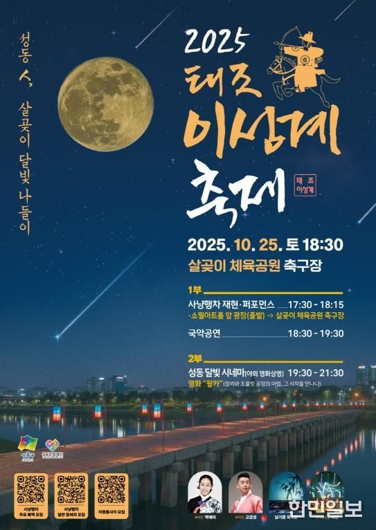 한민일보 서울포커스 임광현 기자 | 서울 성동구는 오는 10월 25일 살곶이 체육공원 일대에서 '2025년 태조 이성계 축제'를 개최한다고 밝혔다.