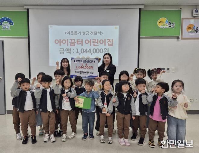 한민일보 서울포커스 차재만 기자 | 양평군 용문면은 지난 20일 용문면 소재 아이꿈터 어린이집이 주최한 ‘소소한 기쁨, 특별한 만남, 행복 나눔 작은 장터’ 바자회를 통해 마련된 수익금 1,044,000원을 용문면에 기탁했다고 밝혔다.
