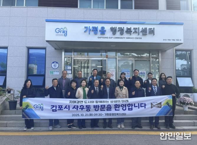 한민일보 서울포커스 최성훈 기자 | 가평군 가평읍 행정복지센터는 21일 자매결연 도시인 김포시 사우동 행정복지센터 방문단을 맞아 양 지역 간 교류와 상생 발전을 위한 간담회를 열었다. 이번 만남은 2023년 9월 가평군과 김포시가 자매결연 협약을 한 이후, 상호 우호 증진과 협력 강화를 위해 마련했다.