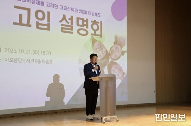 한민일보 서울포커스 박정민 기자 | 마포구는 10월 21일 오후 6시 30분, 마포중앙도서관 6층 마중홀에서 변화하는 교육과정과 복잡한 입시 제도로 어려움을 겪고 있는 관내 학생 및 학부모들에게 유용한 정보를 제공하고자 ‘2026학년도 고입설명회’를 개최했다.