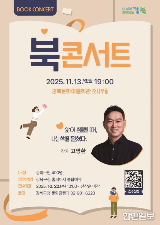한민일보 서울포커스 김봉순 기자 | 서울 강북구는 오는 11월 13일 오후 7시, 강북문화예술회관 소나무홀에서 고명환 작가 초청 북콘서트를 개최한다고 밝혔다.