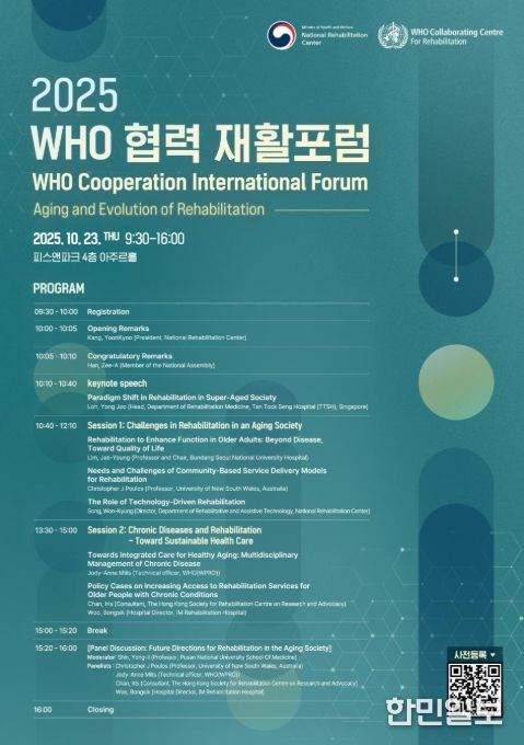 한민일보 서울포커스 임광현 기자 | 보건복지부 국립재활원은 10월 23일 피스앤파크 컨벤션(서울 용산구)에서 ‘세계보건기구(WHO) 협력 재활 토론회’를 대면 및 온라인으로 동시 개최한다.