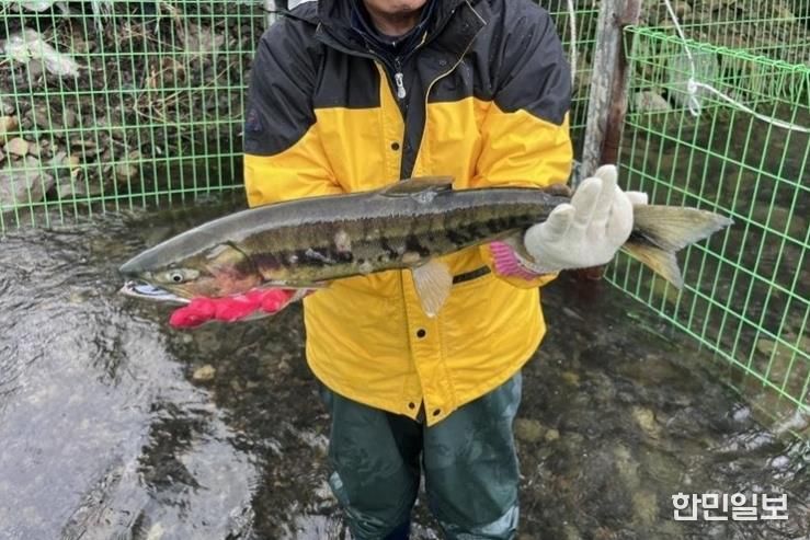 한민일보 서울포커스 기자 | 울주군 구영교 일대에서 산란을 위해 고향인 태화강으로 돌아온 회귀연어가 올해 처음으로 포획됐다.