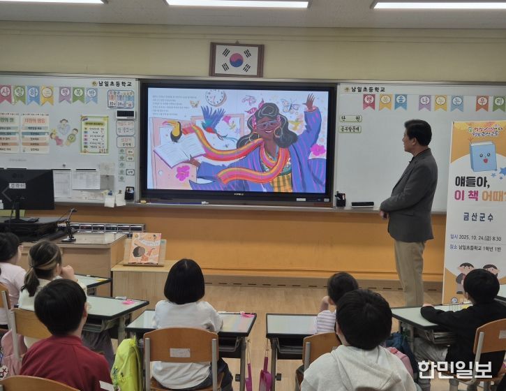 한민일보 서울포커스 유돈상 기자 | 박범인 금산군수는 지난 24일 남일초를 방문해 학생들과 함께 그림책 읽는 시간을 가졌다.