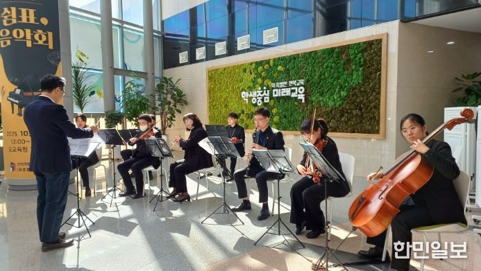 최재일 유초등특수교육과장은 “잠시 멈춰 듣는 점심시간의 음악이 단순한 휴식이 아니라, 우리 마음속 편견을 내려놓는 시간이 됐길 바란다”며 “어울소리 오케스트라의 선율처럼, 장애인과 비장애인이 함께 어울리는 조화로운 장애공감 문화를 만들어가겠다”고 말했다.