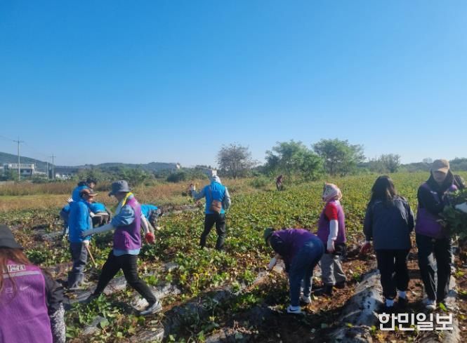 이날 참여자들은 고구마 수확을 준비중인 밭에서 줄기 제거 작업을 도우며 부족한 농촌 인력 보충에 힘을 보탰다.