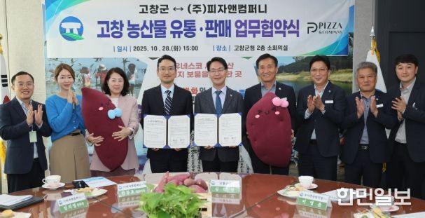 한민일보 서울포커스 박용남 기자 | 고창군이 지난 28일 오후 군청 회의실에서 ㈜피자앤컴퍼니(대표 한동효)와 고창 고구마를 활용한 피자개발 및 상생발전을 위한 업무협약(MOU)을 체결했다고 밝혔다.