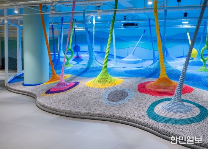 ‘갯벌놀이터’는 갯벌의 생태적 요소와 환경적 특성을 바탕으로, 그물 구조를 예술적으로 구현한 비정형 놀이시설이 특징이다. 공간 자체가 하나의 예술적 체험으로 작동하며, 어린이들이 갯벌의 역동성과 생명력을 몸으로 느끼고 탐험할 수 있도록 설계됐다. ‘갯벌책방’은 약 2,000권 규모의 서가를 갖춘 자율 운영 독서 공간으로, 놀이와 독서를 함께 즐길 수 있는 열린 문화공간이다. 경기문화재단 임직원, 지역 주민, 경기도 내 출판사 등의 자발적인 도서 기증으로 서가가 채워지며, 기증자에게는 경기문화재단 기부캠페인 ‘문화이음’을 통한 기부 혜택이 제공된다. ‘갯벌마당’은 탄성 고무칩 바닥에 다양한 색상과 형태의 패턴이 조성된 야외 놀이터로, 어린이들이 즐기는 야외 마당 놀이(멀리뛰기, 사방치기, 원마커 등)를 할 수 있도록 구성되어 있으며 자유로운 신체 활동이 가능하다. 인근 테라스에는 인조잔디와 야외용 테이블·의자가 마련되어 있어 보호자들이 아이들을 가까이에서 지켜보며 휴식을 취할 수 있다.