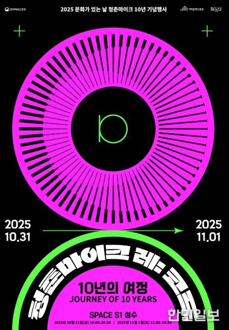 한민일보 서울포커스 박용남 기자 | 문화체육관광부는 지역문화진흥원과 함께 10월 31일부터 11월 1일까지 복합문화공간 ‘스페이스 에스원(SPACE S1, 서울 성동구)’에서 ‘문화가 있는 날 청춘마이크’ 10주년 기념행사 ‘청춘마이크 레:코드-10년의 여정’을 개최한다.