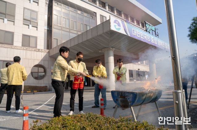 또 청사 건물에서 예기치 않은 화재 발생을 가상으로 설정하고 지휘반, 진압반, 대피유도반, 구조구급반 등 직원 자위소방대의 화재 초기 진압과 화재 발생에 대비한 종합 훈련으로 진행됐다.
