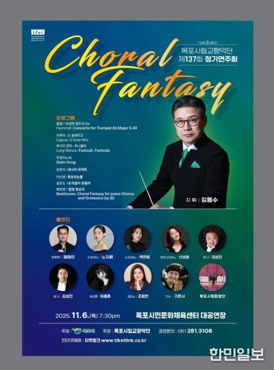 한민일보 서울포커스 임광현 기자 | 깊어가는 가을밤, 아름다운 선율로 시민들의 마음을 채울 목포시립교향악단 제137회 정기연주회가 오는 11월 6일 오후 7시 30분, 목포시민문화체육센터에서 열린다.