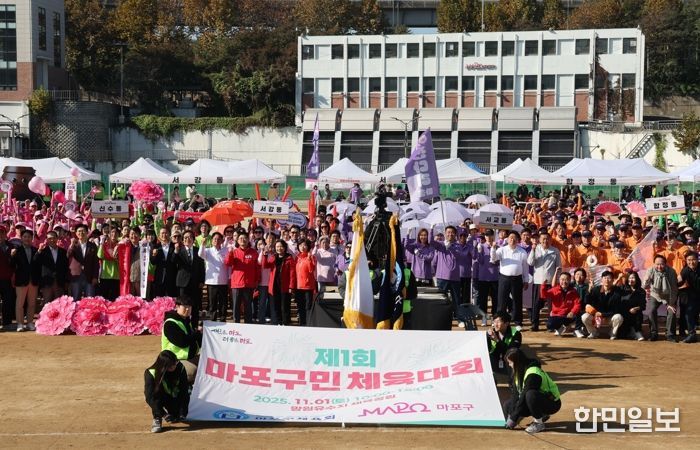 한민일보 서울포커스 박정민 기자 | 높고 청명한 가을 하늘 아래, 11월 1일 오전 망원유수지 체육공원에서 ‘제1회 마포구민 체육대회’가 열렸다.