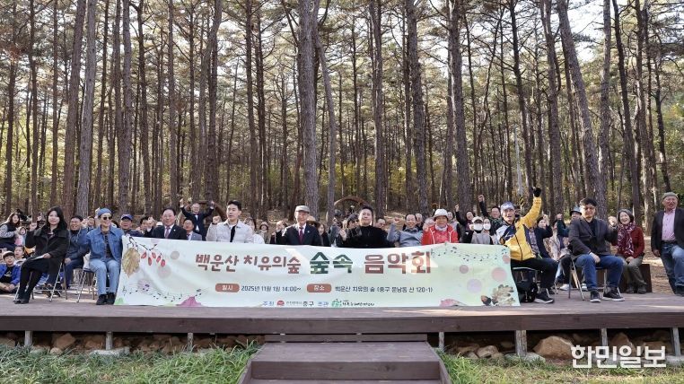 한민일보 서울포커스 백진욱 기자 | 인천시 중구는 지난 1일 백운산 치유의 숲(운남동 산120-1)에서 ‘백운산 치유의 숲 숲속 음악회’를 성황리에 개최했다.