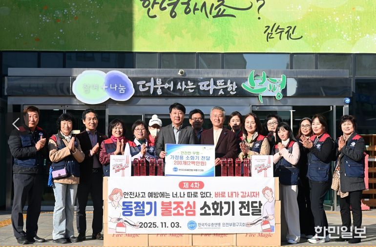 한민일보 서울포커스 김성혜 기자 | 부평구는 지난 3일 한국자유총연맹 부평구지회로부터 화재 예방을 위한 소화기 200개를 전달받았다고 밝혔다.