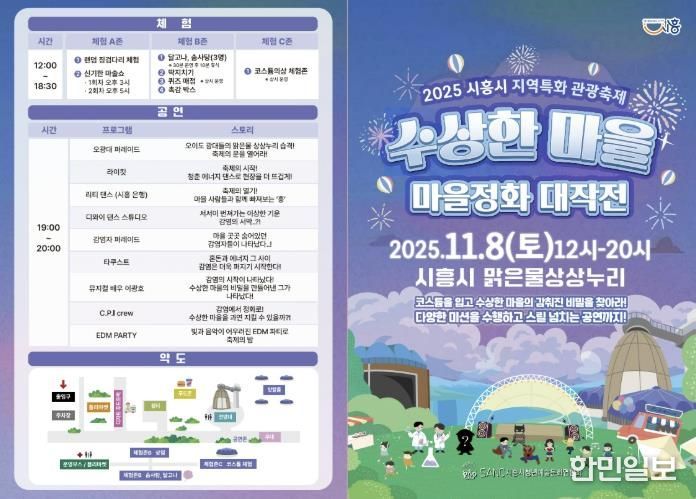 한민일보 서울포커스 유현민 기자 | 시흥시는 2025년 시흥시 지역특화 관광축제 지원사업 선정 축제인 ‘수상한 마을 마을정화대작전’을 오는 11월 8일 정왕동 맑은물상상누리 일원에서 개최한다. 이번 축제는 시흥시 청년예술연합회가 주관한다.