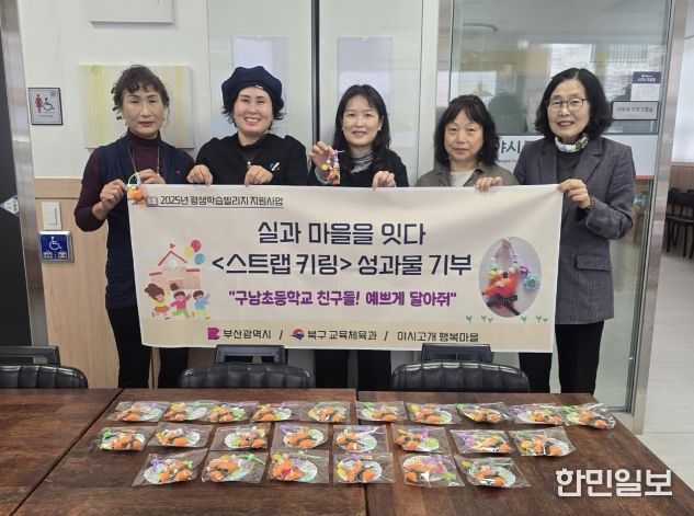 또한 구포동 구남 야시고개 행복마을에서는 ‘실과 마을을 잇다’ 프로그램을 통해 마을의 상징인 야시고개 전설 속 여우 캐릭터를 활용한 스트랩 키링을 제작했다. 주민들은 직접 만든 키링을 지역 구남초등학교 1학년 학생들에게 기부하며 마을과 학교가 함께하는 따뜻한 나눔을 실천했다.