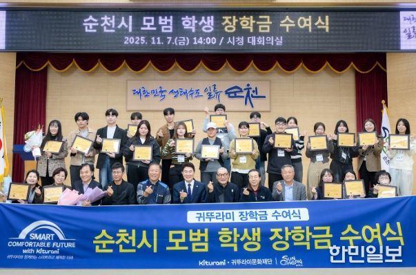 한민일보 서울포커스 임광현 기자 | 순천시는 7일 순천시청 대회의실에서 귀뚜라미문화재단 후원으로 ‘순천시 모범 학생 장학금 수여식’을 개최했다.