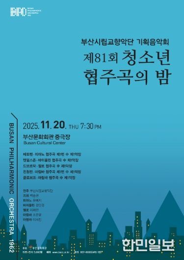 한민일보 서울포커스 임광현 기자 | 부산시립교향악단의 기획음악회 『제81회 청소년 협주곡의 밤』 무대가 오는 11월 20일(목) 오후 7시 30분 부산문화회관 중극장에서 펼쳐진다.