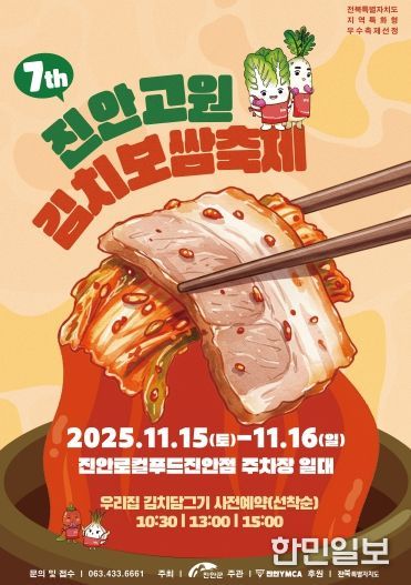 한민일보 서울포커스 박용남 기자 | 진안군은 오는 11월 15일에서 16일까지 이틀간 로컬푸드 직매장 진안점(진안군 진안읍 학천변길 37-9) 일원에서 ‘진안고원 김치보쌈 축제’를 개최한다.