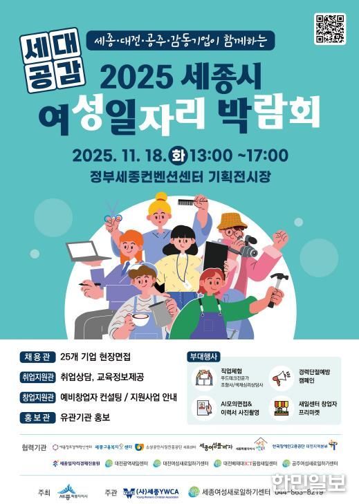 한민일보 서울포커스 곽동근 기자 | 세종특별자치시가 오는 18일 정부세종컨벤션센터 기획전시장에서 ‘세종시 여성일자리 박람회’를 개최한다.