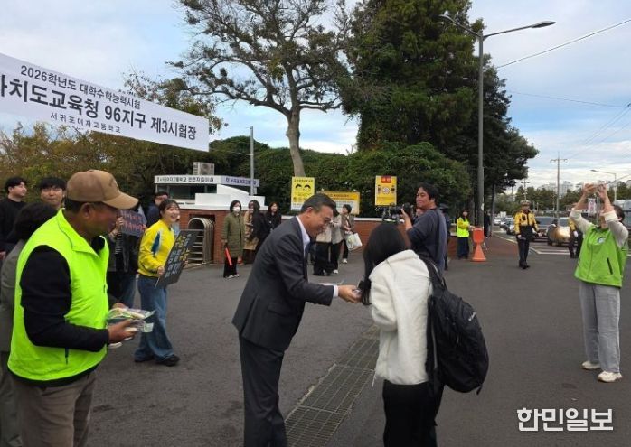 한민일보 서울포커스 김다남 기자 | 서귀포시는 11월 13일 서귀포여자고등학교와 남주고등학교를 방문하여 2026학년도 대학수학능력시험 수험생을 응원하고 수능 지원행사를 진행한 대륜동‧서홍동 청소년지도협의회를 격려했다.