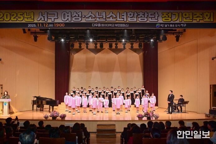 한민일보 서울포커스 임광현 기자 | 부산 서구 여성·소년소녀합창단의 정기연주회가 지난 12일 오후 7시 동아대학교 부민캠퍼스 다우홀에서 성황리에 개최됐다. 지난 1년간 갈고닦은 실력을 아낌없이 선보인 합창단은 깊어가는 가을밤에 어울리는 풍성하고 감동적인 무대를 선사하며 관객들의 뜨거운 박수갈채를 받았다.