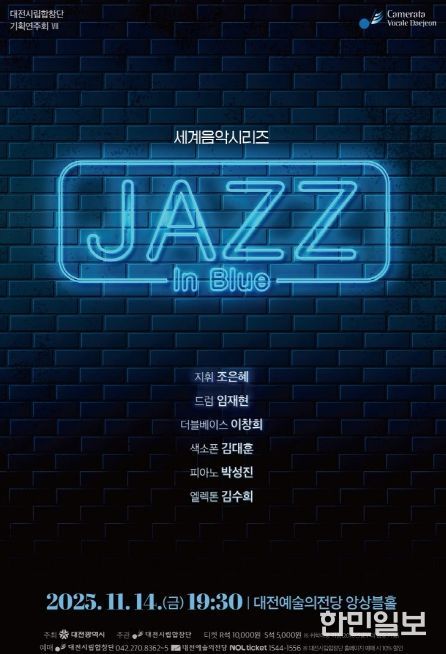 한민일보 서울포커스 김서윤 기자 | 대전시립합창단의 기획연주회 세계음악시리즈 ‘재즈 인 블루’가 14일 금요일 오후 7시 30분 대전예술의전당 앙상블홀 무대에 오른다.