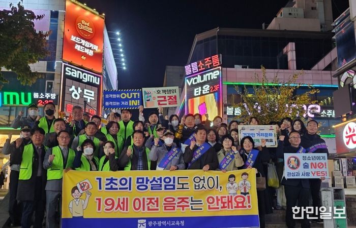 한민일보 서울포커스 박용남 기자 | 광주시교육청은 지난 14일 상무지구 일대에서 광주광역시, 광주경찰, 서구, 한국외식업중앙회 광주지회, 광주청소년유해환경감시단 등과 함께 수능 이후 청소년 보호를 위한 현장 캠페인을 전개했다.