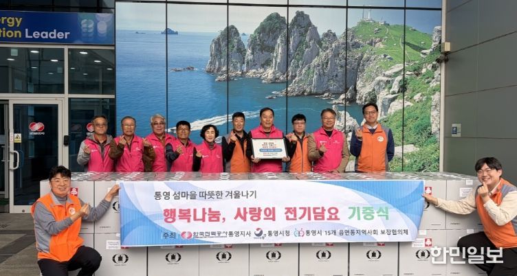 한민일보 서울포커스 김서윤 기자 | 통영시에서는 지난 17일 한국전력공사통영지사에서 통영시 읍면동지역사회보장 협의체(위원장 박종헌) 위원과 한국전력공사통영지사 관계자들이 참석한 가운데‘겨울철 사랑의 난방용품 나눔’전달식을 가졌다.