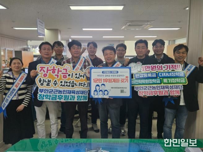 한민일보 서울포커스 김용택 기자 | 부안군 상하수도사업소는 최근 (재)부안군근농인재육성재단이 추진 중인 장학금 1군민 1후원계좌갖기 릴레이 캠페인에 참여하며 지역 인재 육성에 힘을 보탰다.