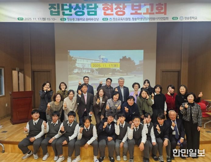 한민일보 서울포커스 김봉순 기자 | 경상북도청송교육지원청 학생상담자원봉사자 연합회는 2025년 11월 17일 15시 청송중학교 2학년 학생들을 대상으로 ‘집단상담 현장보고회’가 성황리에 마무리됐다.
