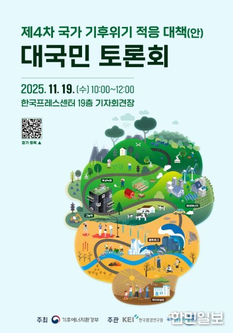 한민일보 서울포커스 진광성 기자 | 기후에너지환경부은 11월 19일 한국프레스센터(서울 중구 소재)에서 ‘제4차 국가 기후위기 적응대책(2026~3030)’ 관련 대국민 토론회를 개최한다.
