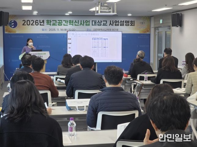 한민일보 서울포커스 유한희 기자 | 대전시교육청은 11월 18일 2026년 학교공간혁신사업의 원활한 추진을 위해 대상학교 교장 및 교감, 교무부장, 행정실장, 시설업무담당자 등을 대상으로 사업설명회를 개최했다고 밝혔다.