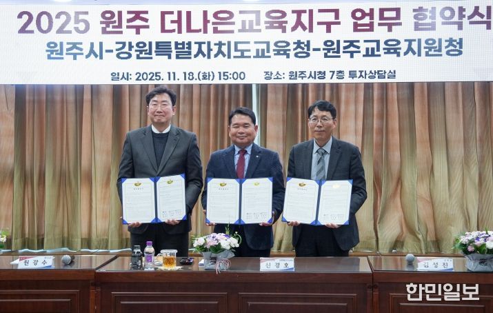 한민일보 서울포커스 곽중희 기자 | 강원특별자치도교육청은 원주시, 원주교육지원청과 11월 18일 원주시청에서 ‘원주 더나은교육지구 연장지정 업무협약’을 체결했다.