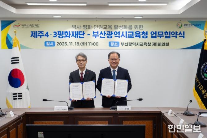 한민일보 서울포커스 임경복 기자 | 제주4·3평화재단(이사장 김종민)과 부산광역시교육청이 올바른 역사관 함양과 교사 및 학생 대상의 내실 있는 역사·평화·인권교육 활성화를 위한 협력을 목적으로 11월 18일 부산광역시교육청에서 업무협약(MOU)을 체결했다.