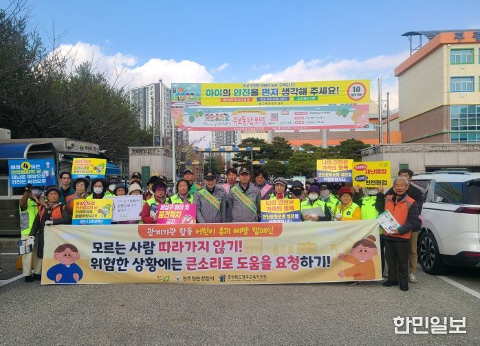 한민일보 서울포커스 김다남 기자 | 청주시는 20일 청원구 주중초등학교 일원에서 어린이 등하굣길 안전 확보를 위한 ‘어린이 약취·유인 예방 캠페인’을 실시했다.