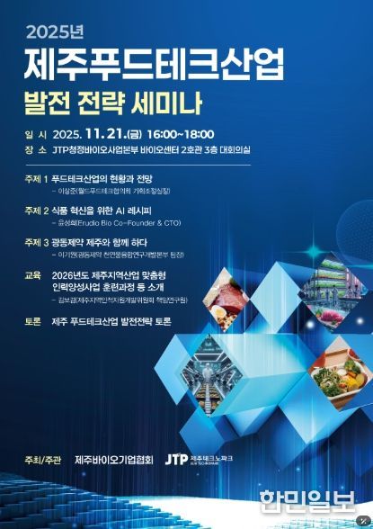 한민일보 서울포커스 임철현 기자 | 제주에서 푸드테크 산업에 대한 발전 전략과 과제를 모색하는 세미나가 열린다.
