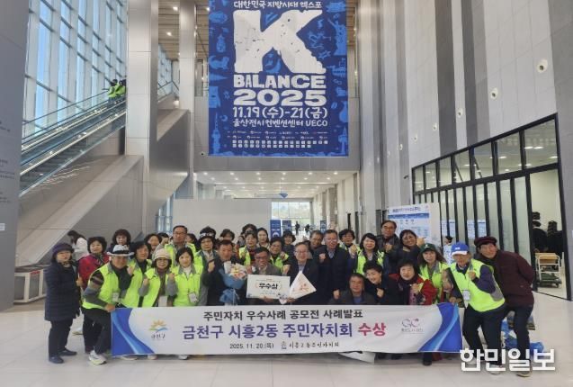 한민일보 서울포커스 곽중희 기자 | 금천구는 시흥2동 주민자치회가 11월 20일 울산광역시 UECO에서 열린 ‘지방자치 30주년 기념 주민자치 우수사례 공모전’ 학습공동체분야에서 '우수상'을 수상했다고 밝혔다.