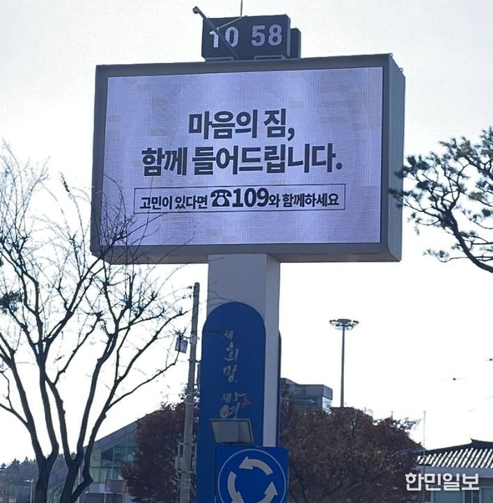 전광판에는 ▲마음의 봄은 반드시 찾아옵니다 ▲작은 희망이 큰 내일을 만듭니다 ▲당신의 이야기에 귀 기울입니다(☎109) 등 짧지만 따뜻한 의미를 담은 문구들이 송출되고 있다.