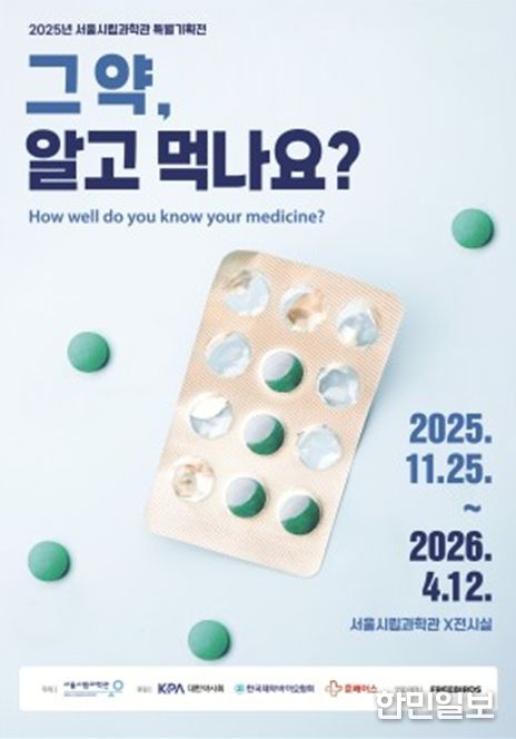한민일보 서울포커스 국용호 기자 | 서울시립과학관은 11월 25일부터 내년 4월 12일까지 과학관 3층 기획전시실(X전시실)에서 2025년 특별기획전, 『그 약, 알고 먹나요?』를 개최한다고 밝혔다.