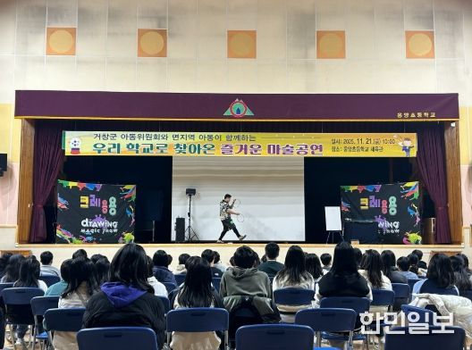 한민일보 서울포커스 김서윤 기자 | 거창군 아동위원회가 주관하는 ‘지역 아동과 함께하는 찾아가는 공연’이 지난 11월 21일 웅양초등학교 체육관에서 개최되어 큰 호응을 얻었다.