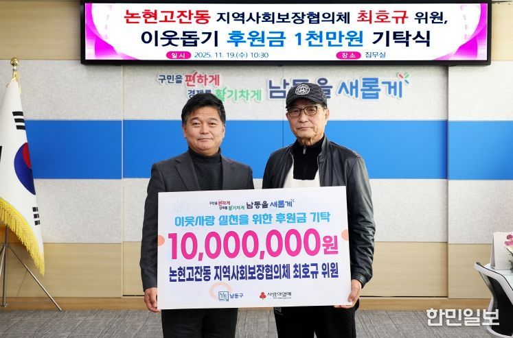 한민일보 서울포커스 김성혜 기자 | 인천시 남동구는 논현고잔동 지역사회보장협의체 최호규 위원으로부터 이웃돕기 성금 1천만 원을 기탁받았다고 24일 전했다.